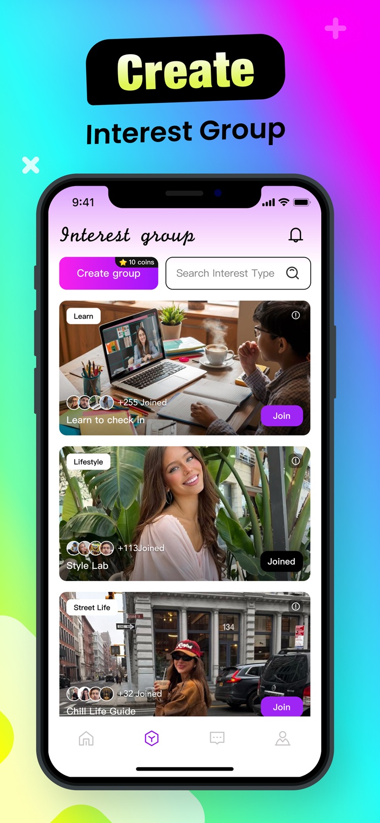 Create and join interest-based groups to share your passions, from art and music to sports and tech.